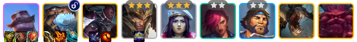 在保持10金以上的情况下,把巴德上场。在利息不崩的范围内尽早把巴德升到2星,这样能提高胜利时带来高费单位或海克斯霸龙的概率。 alt text