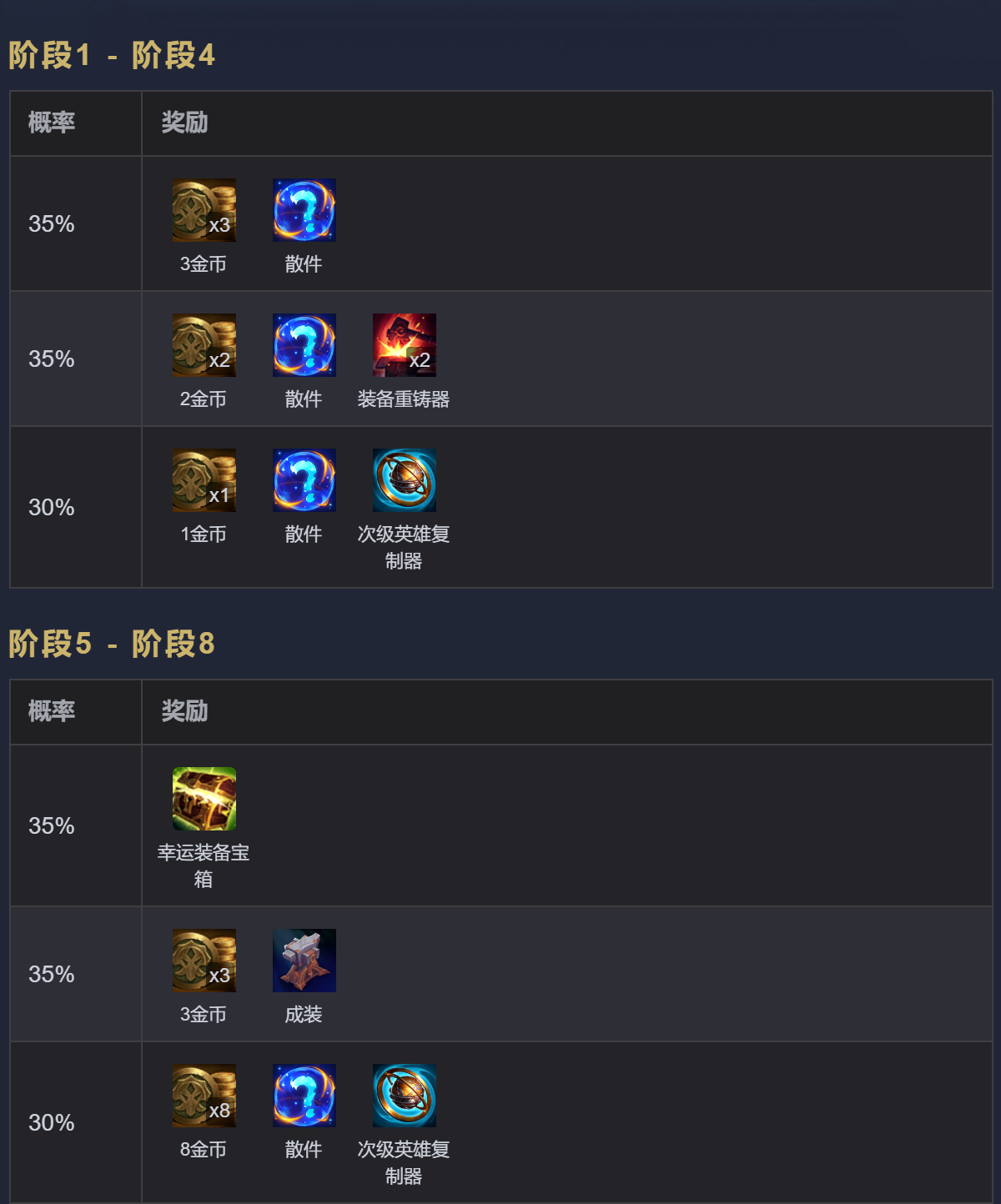 新版本更新<br>以绪塔尔奖励表