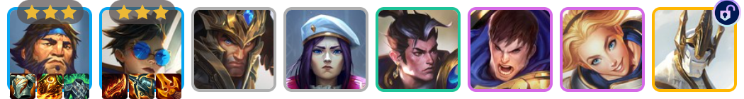 这是一套3费赌狗流阵容。在7级时快速D牌,凑齐薇恩和洛里斯。
